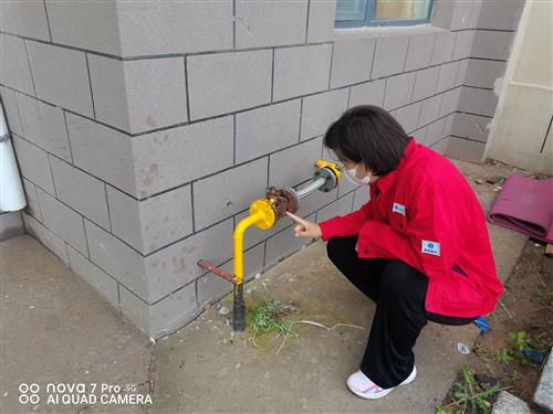 燃?xì)夤矩?fù)責(zé)人現(xiàn)場(chǎng)查看康馨小區(qū)加裝軟連接
