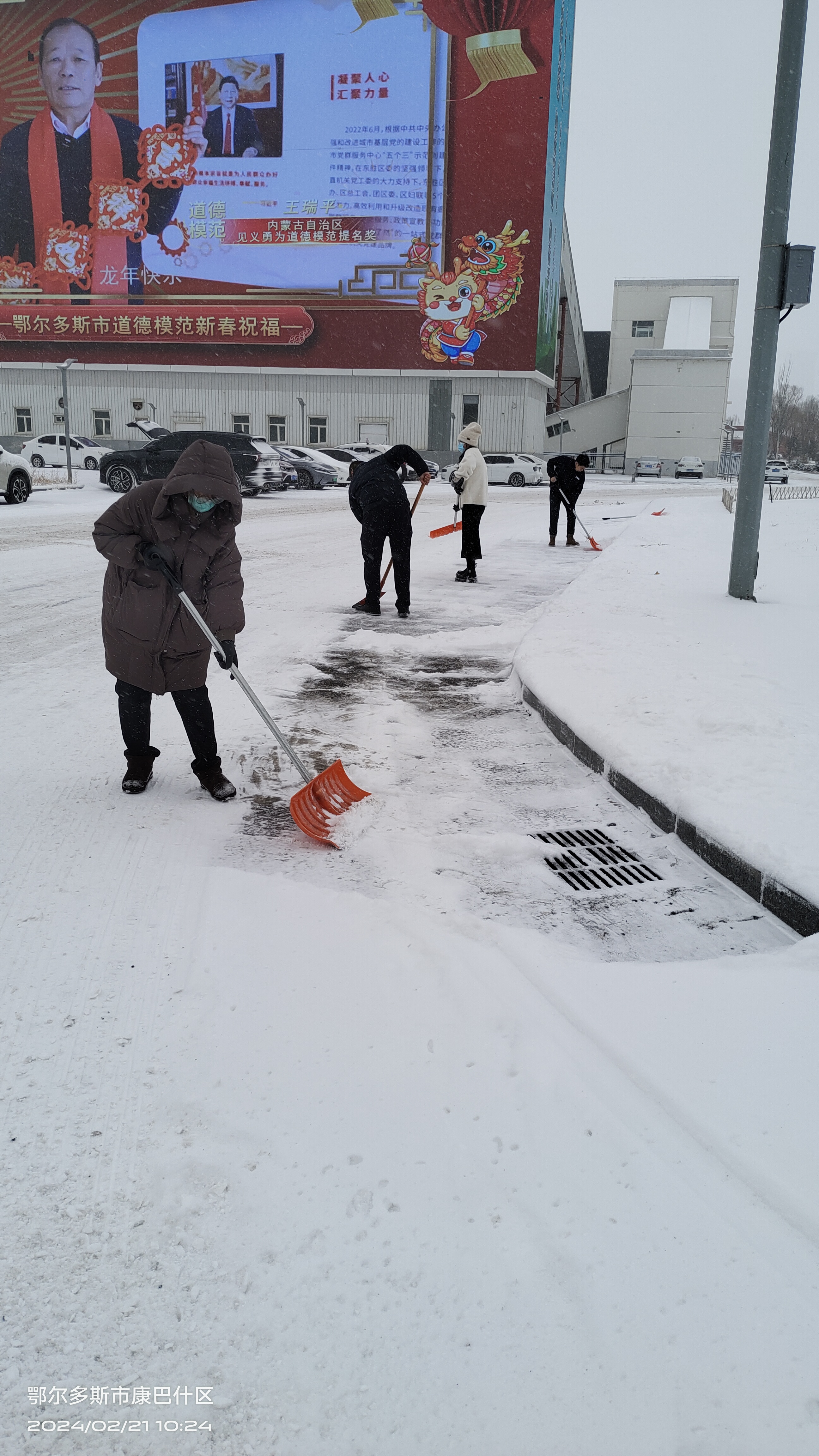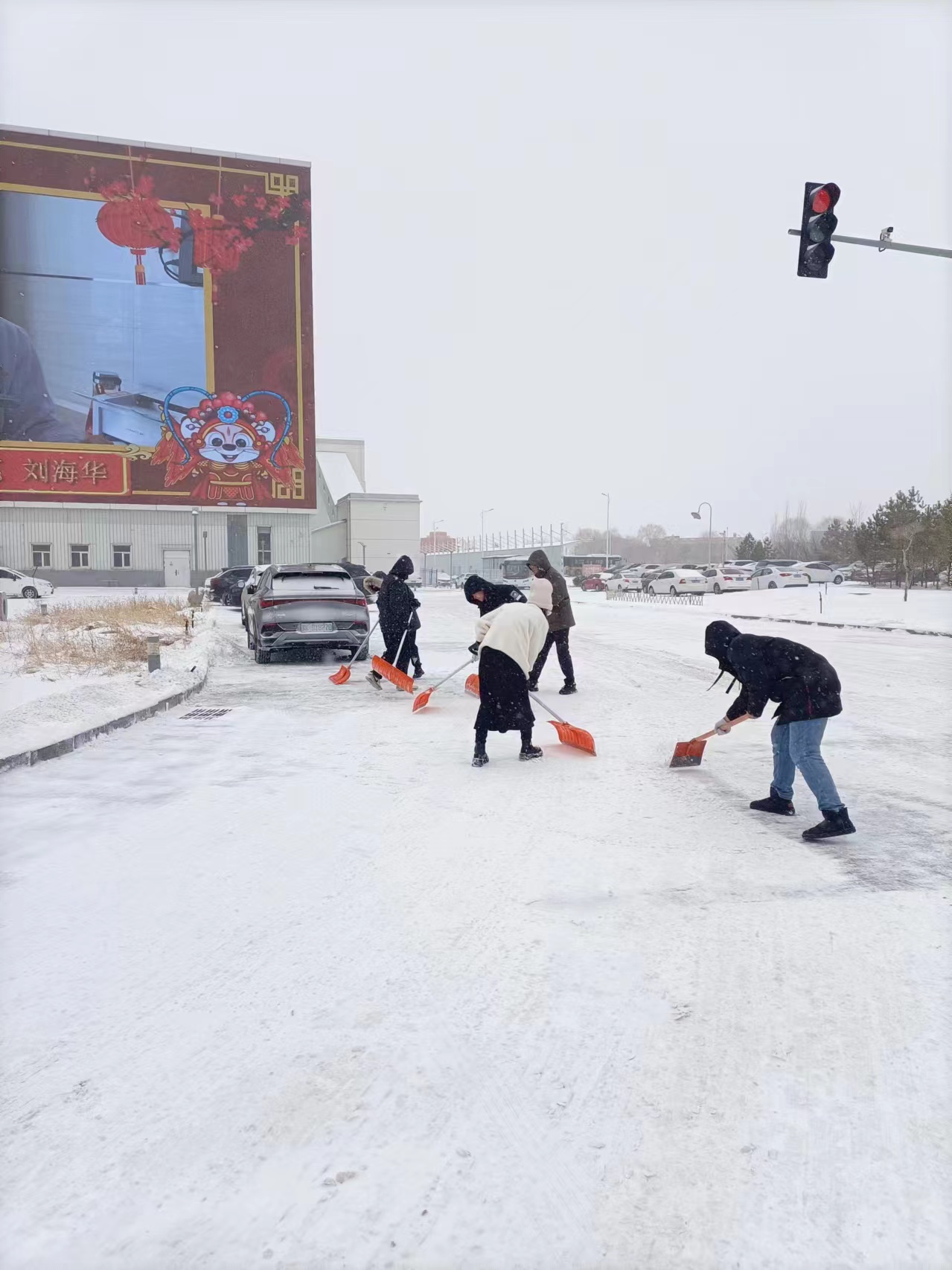 置業(yè)公司對(duì)各個(gè)進(jìn)行清雪除冰行動(dòng)