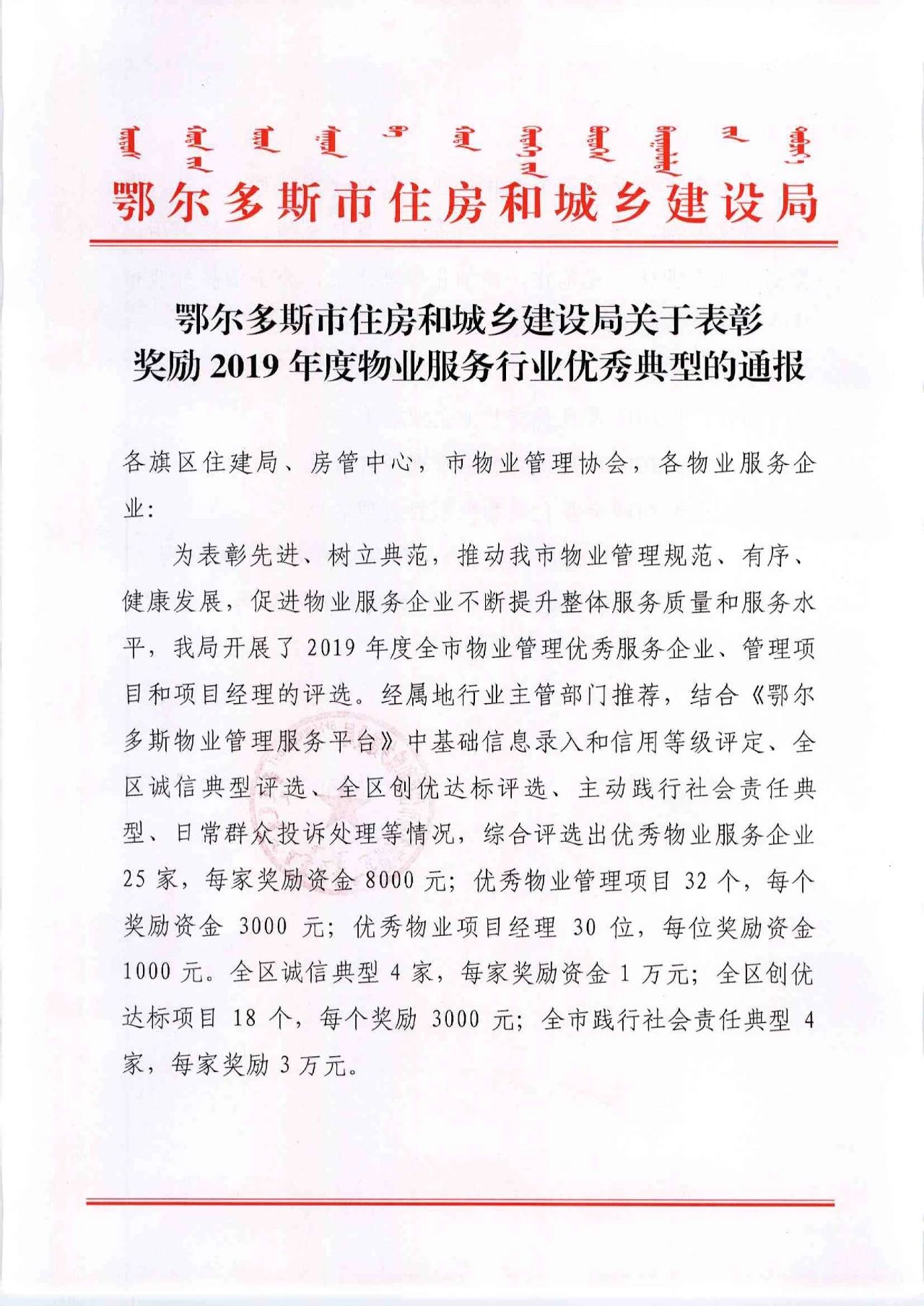 通惠物業(yè)連續(xù)獲得多項榮譽